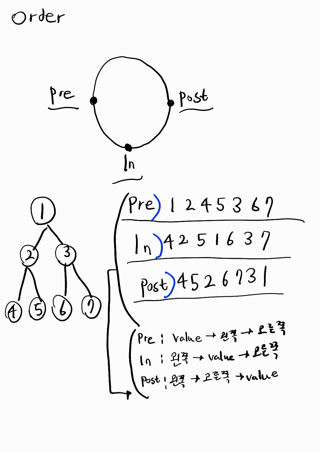 이번 학습에서는 order (pre,in,post) 와 함께 DFS, BFS를 탐구해보겠습니다.