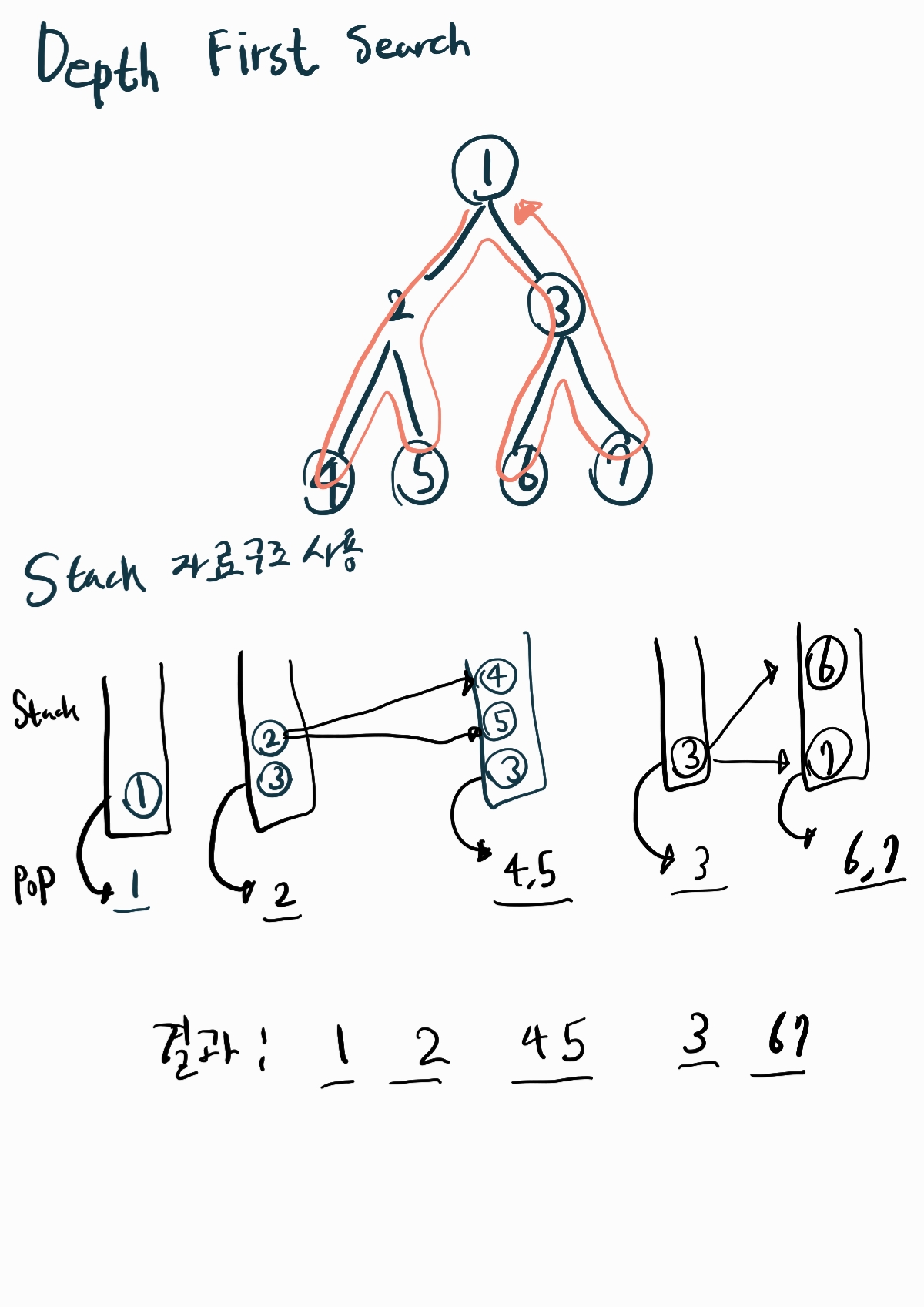 DFS(깊이 우선 탐색)은 말 그대로 depth를 기준으로 전개해나가는 탐색 방법입니다.