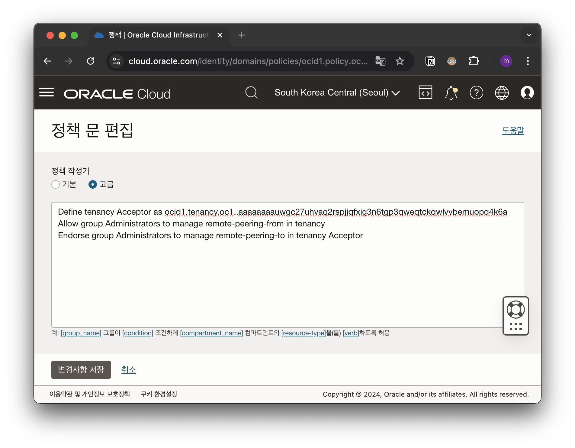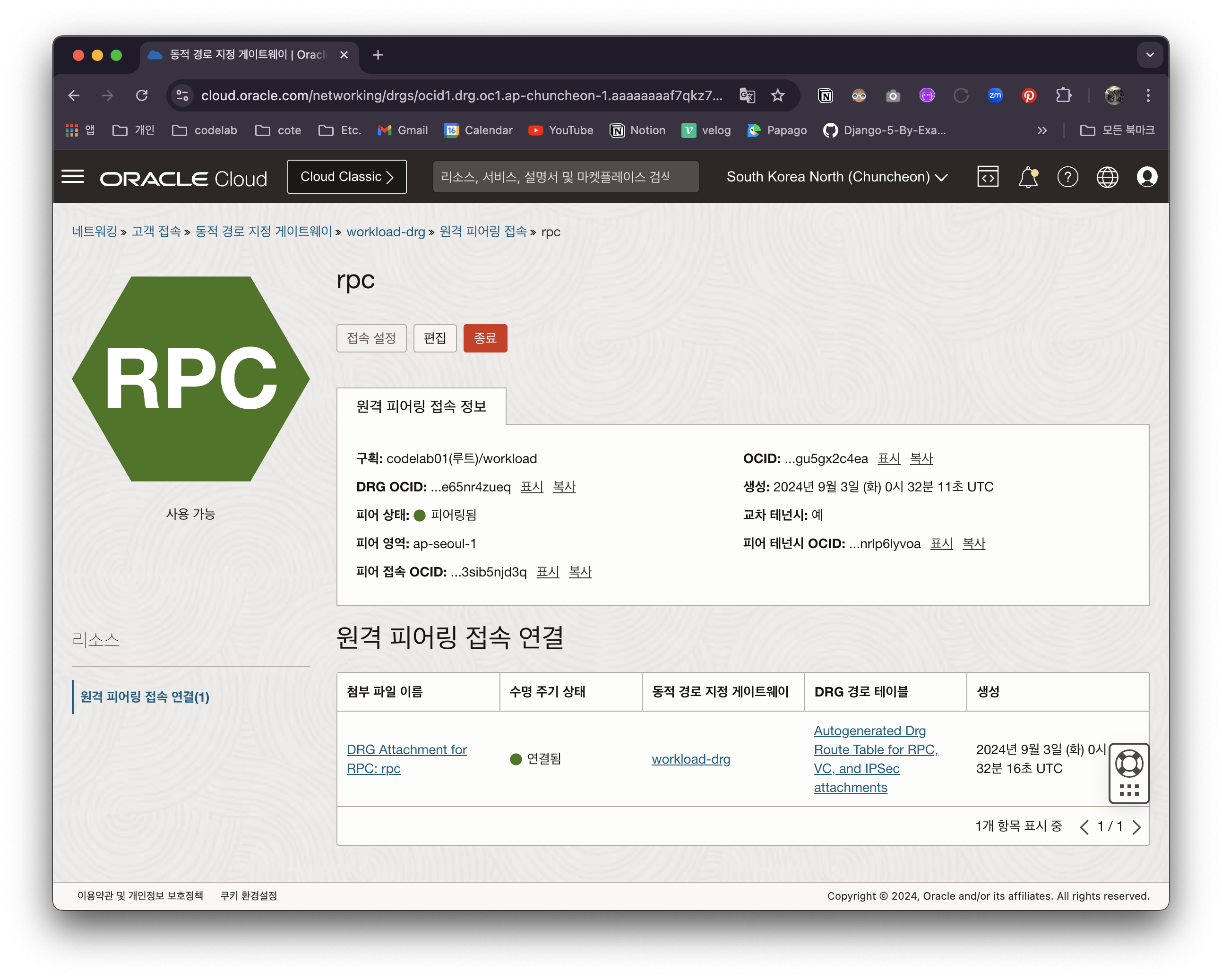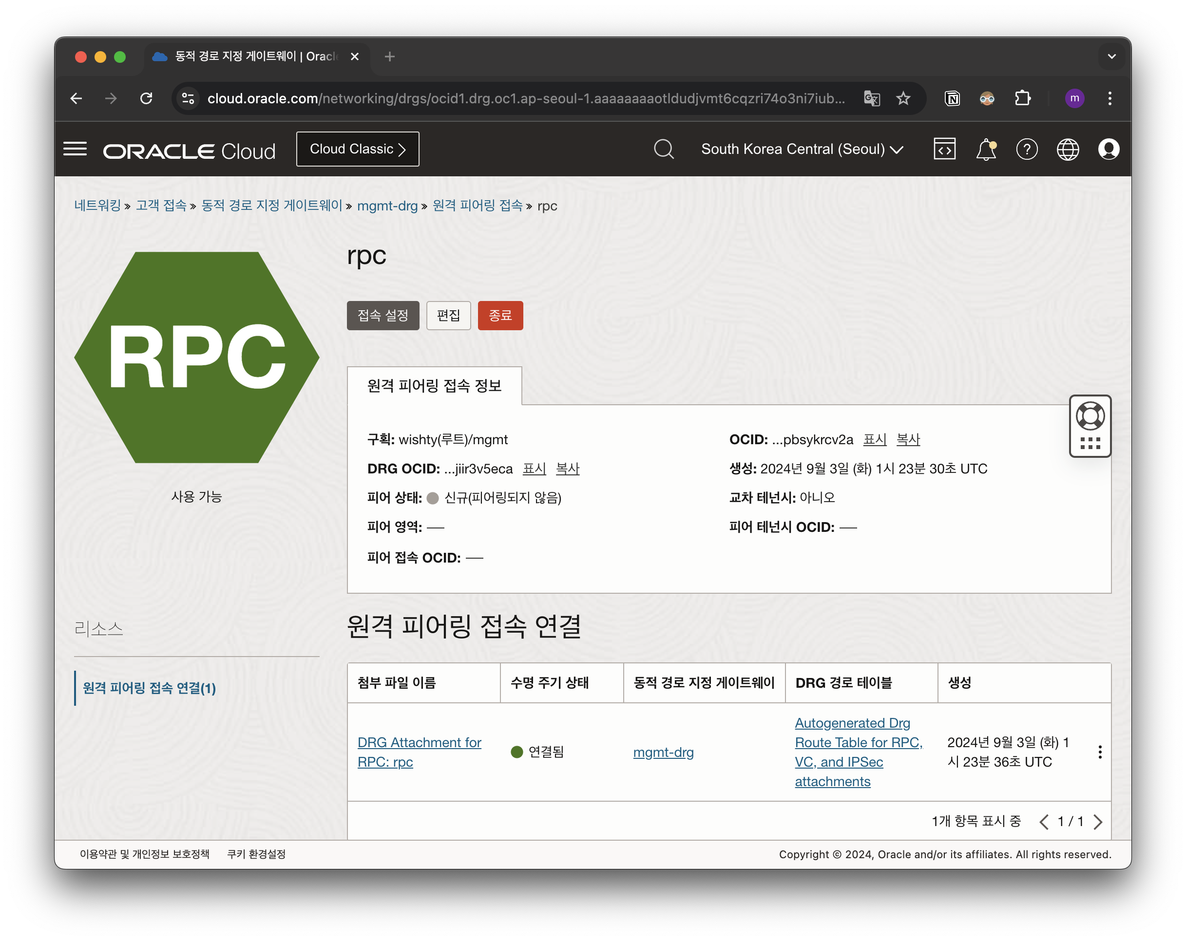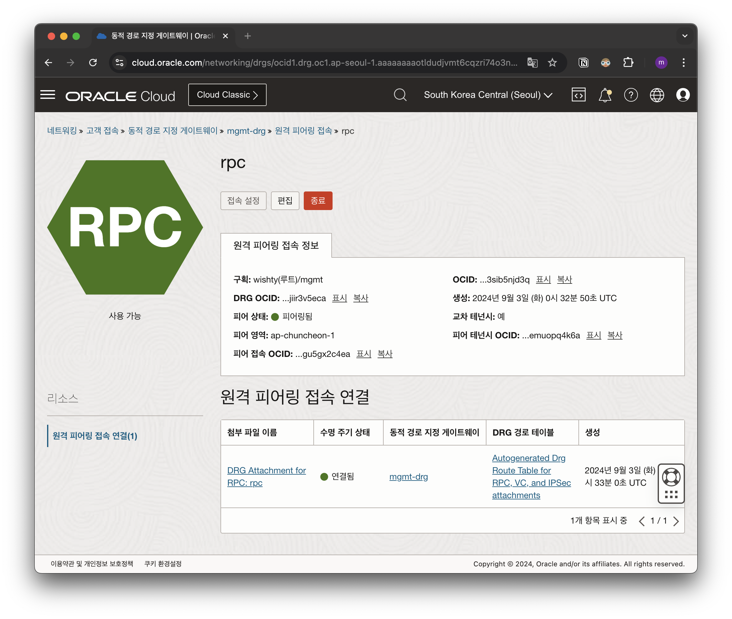 수신자 테넌시의 [rpc] 링크를 클릭 후 rpc ocid를 복사합니다.