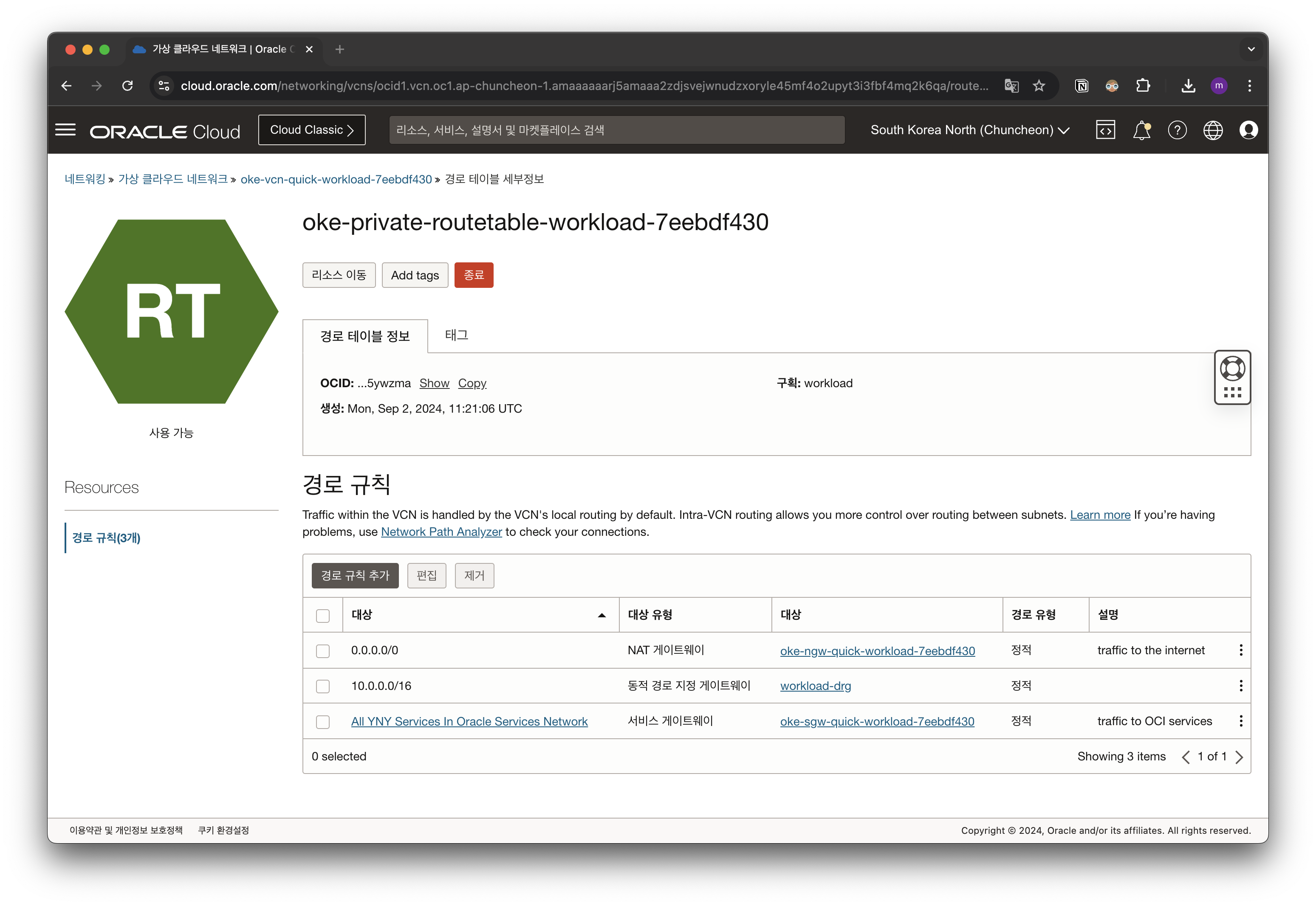 저는 각각 OKE를 만들면서 VPN을 함께 만들었습니다.