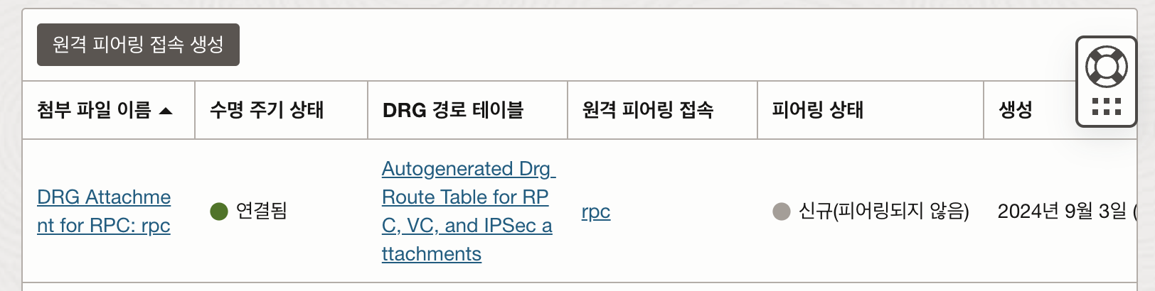 [VCN 연결(Attach)] 을 클릭하여 앞서 생성한 VCN을 연결합니다.