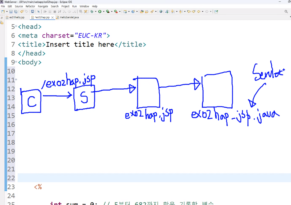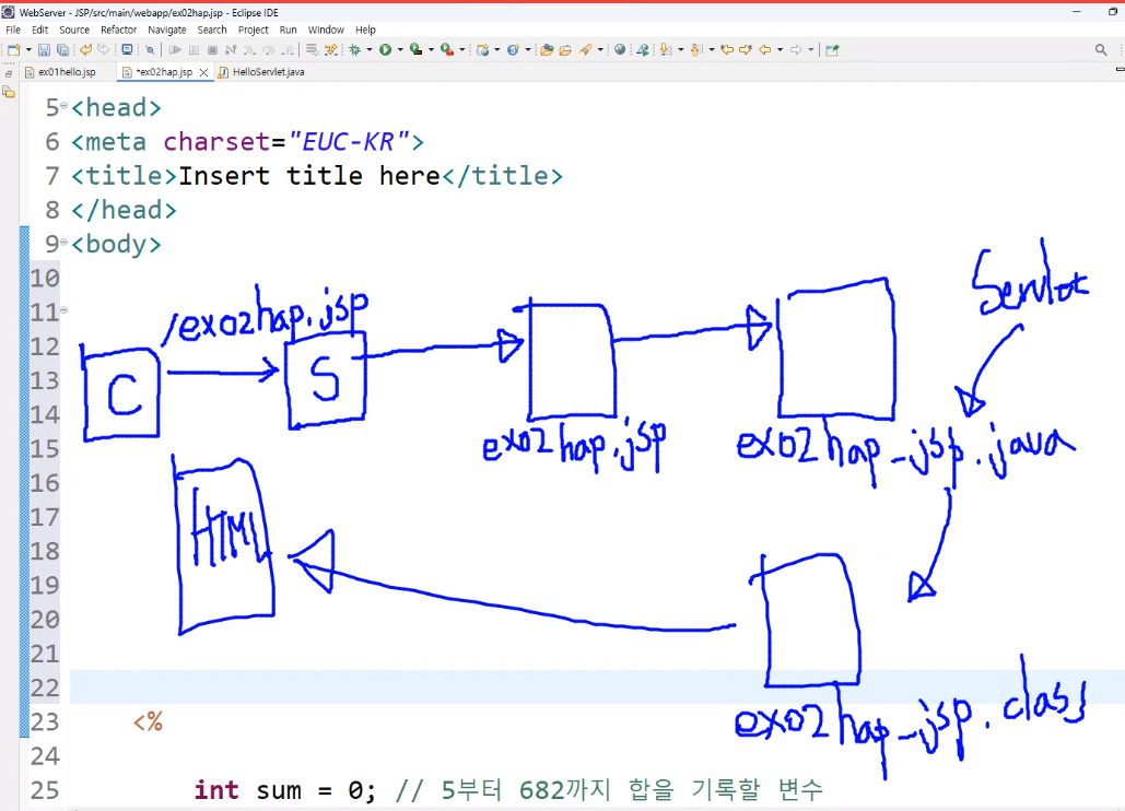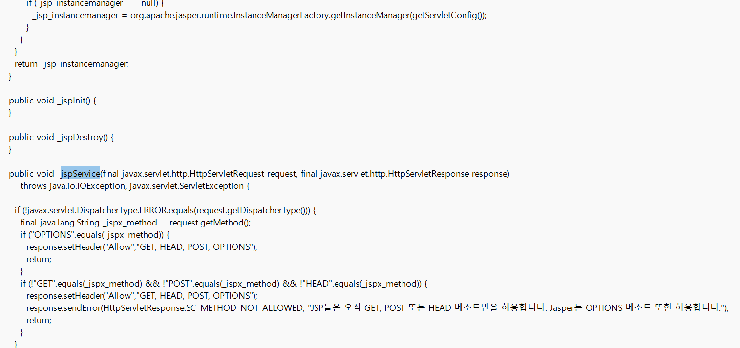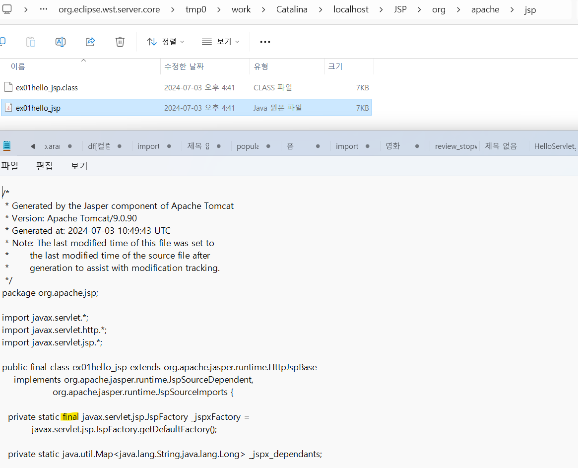 jsp 가 결국 서블릿으로 바뀌고 자바 바뀌고 컴파일 뒤 클래스로 바뀌고 실행하면