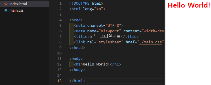 CSS파일을 만들어 작성하고, HTML에서 link태그를 이용하여 연결해준다.