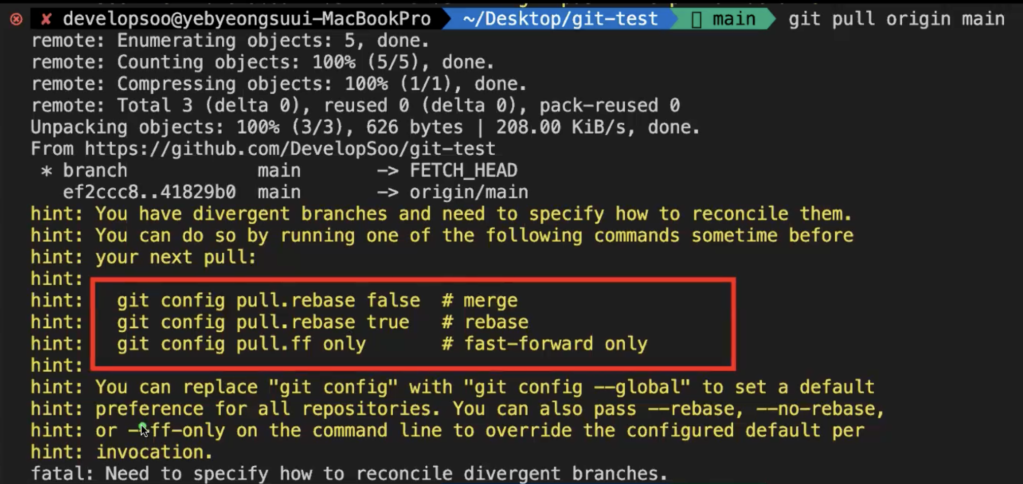 ❗️ git pull 시 다음과 같은 경고문이 뜬다면?