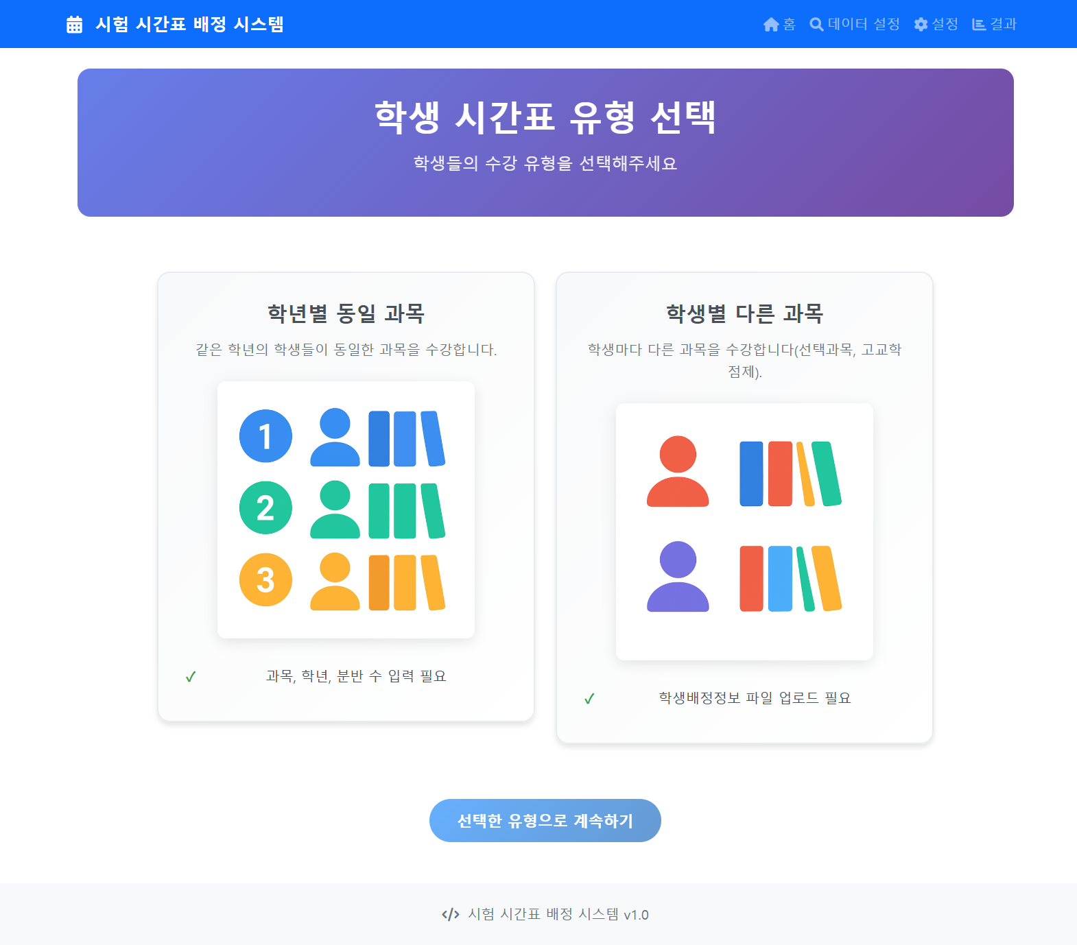 학년별로 수강 정보가 같은 학교(기존)와 학생별로 수강 과목이 모두 다른 학교(고교학점제, 선택과목 등)가 있음을 고려하여 이를 나누어 선택하게 바꾸었다.