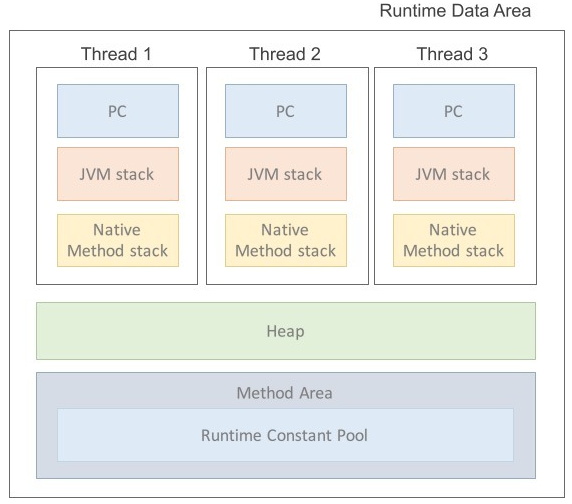 메서드 영역과 힙 영역은 Thread 간 공유하므로