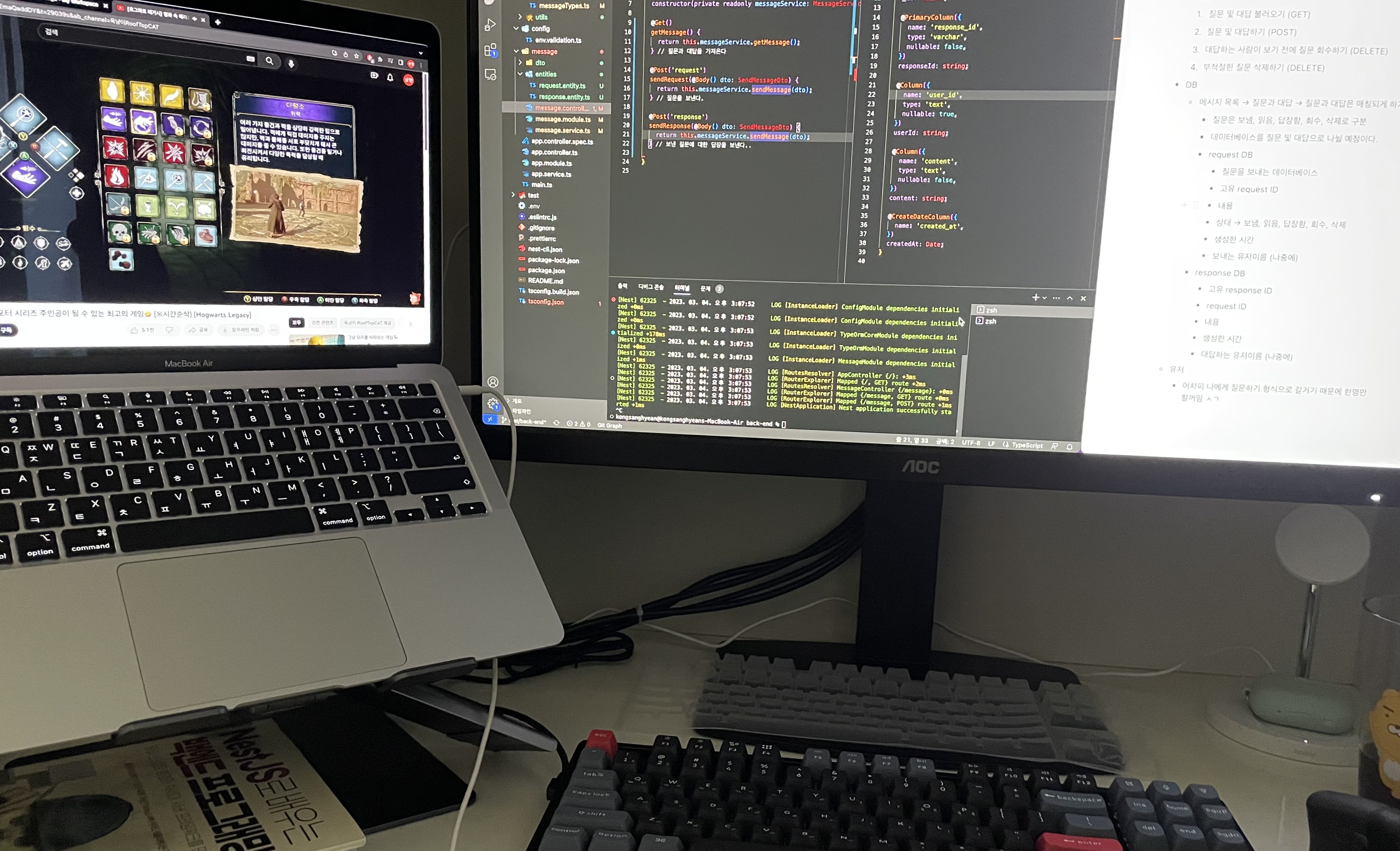 입사한 회사가 벡엔드를 주로 다루고 있어서 그 분야를 알아가기 위하여 NestJS 관련 책을 구입해서 스터디 및 백엔드 프로그래밍에 적응하였다.