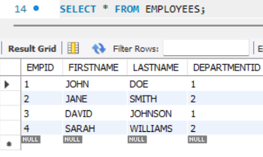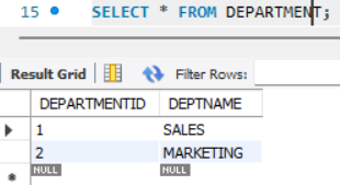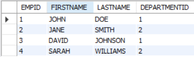 FOREIGN KEY로 'DEPARTMENTID'를 설정한 상황
