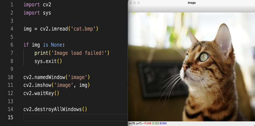 img = cv2.imread('cat.bmp') # 폴더 내에 존재하는 cat.bmp 파일을 불러와 img 변수에 저장