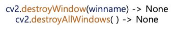 cv2.destroyAllwindows() # 현재 존재하는 창을 모두 닫음