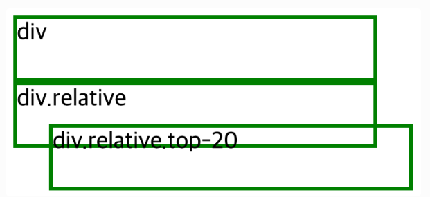 div.relative.top-20 은 위로 20px 이동하고, 왼쪽에서 30px 만큼 떨어졌다.