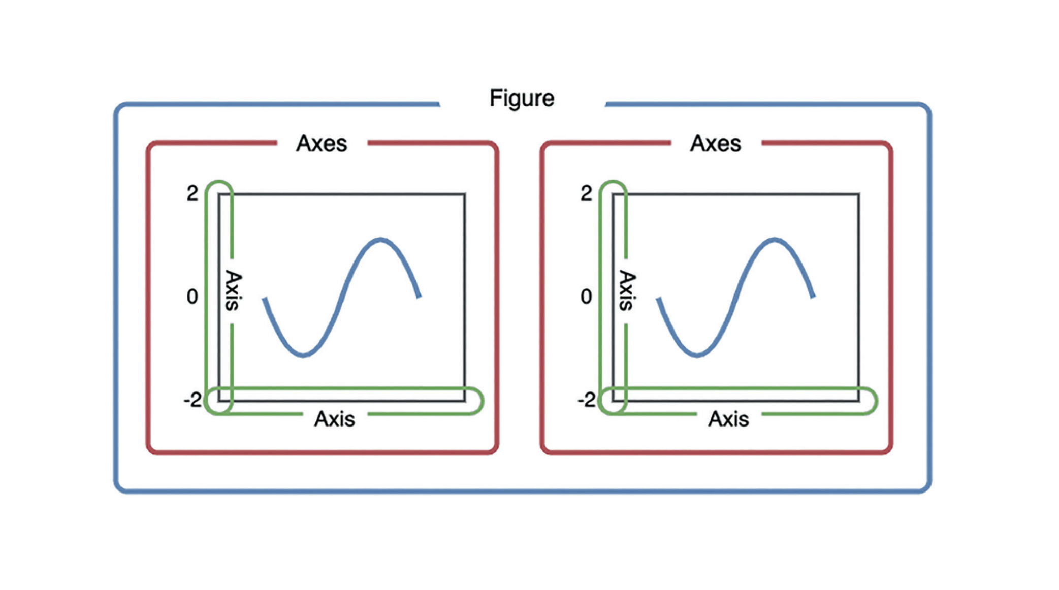 matplotlib의 그래프는 Figure 객체, Axes 객체, Axis 객체 등으로 구성된다.Figure 객체에 Axes를 추가하는 방식으로 하나의 Figure에 여러 그래프를 그릴 수 있다.