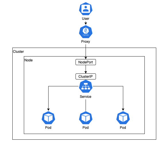 클러스터의 모든 노드는 할당된 포트에서 수신 대기하고 해당 서비스와 연결된 준비된 엔드포인트 중 하나로 트래픽을 전달하도록 자체 구성됩니다.