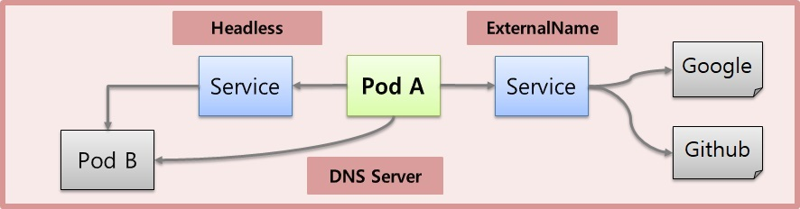 ExternalName 유형의 서비스는 일반적인 셀렉터에 대한 서비스가 아니라 DNS 이름에 대한 서비스에 매핑