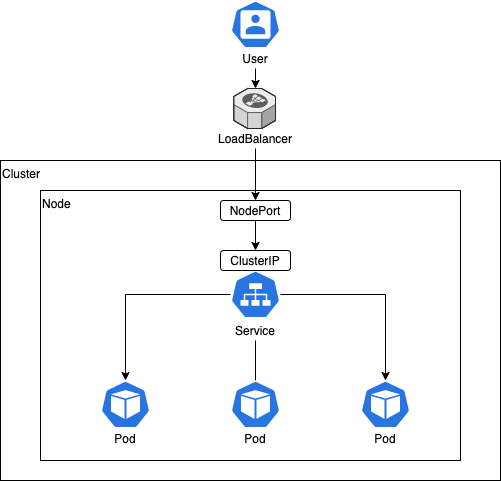 - NodePort 서비스 유형은 ClusterIP 서비스 유형의 확장입니다. 따라서 ClusterIP도 자동으로 생성됩니다.