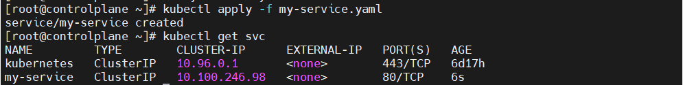 80번 port로 type: ClusterIP로 생성이 되었습니다.