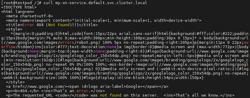 그래도 ExternalName의 서비스 이름으로 google 메인페이지의 정보를 가져올 수 있었습니다.