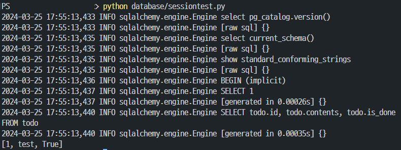오류가 나면 session.scalar(select(1)) 를 통해 세션 연결이 잘 되었는지 (DB가 꺼져 있지는 않은지 등) 확인해본다.