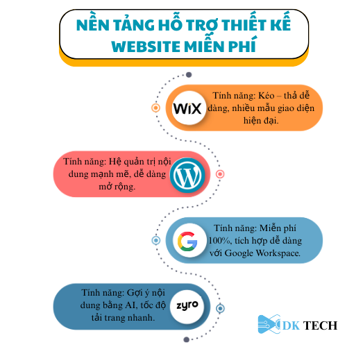 Để thiết kế website miễn phí, bạn cần chọn một nền tảng phù hợp. Dưới đây là 5 công cụ phổ biến, dễ dùng và được hàng triệu người tin tưởng: