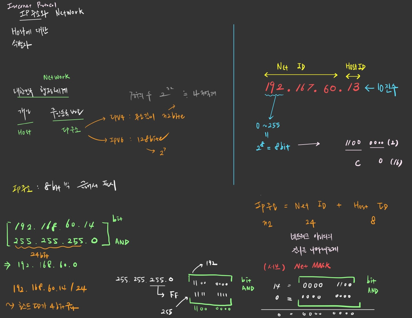 ์๋ฅผ ๋ค์ด, 255.255.255.0 ์๋ธ๋ท ๋ง์คํฌ๋ ์์ 24๋นํธ๊ฐ ๋คํธ์ํฌ ๋ถ๋ถ์ด๊ณ , ๋๋จธ์ง 8๋นํธ๊ฐ ํธ์คํธ ๋ถ๋ถ์ด๋ค.