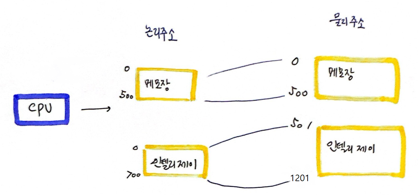 ผ๋ฆฌ ์ฃผ์๋ "CPU"๊ฐ ์๊ฐํ๋ ์ฃผ์์ด๊ณ , ๋ฌผ๋ฆฌ ์ฃผ์๋ ํ๋์จ์ด์ ์ธ ์ฃผ์์ด๋ค.
