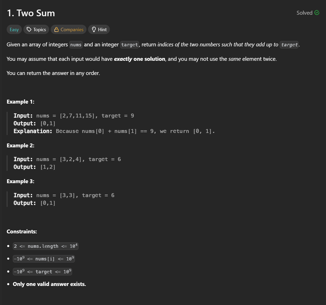 여기서 좀 헷갈렸는데.. hashmap[nums[i]] = i 는 키 값으로 1을, 밸류는 1을 가르키는 인덱스 0 을 삽입함.