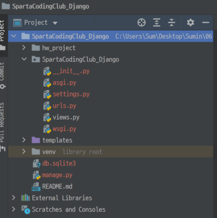 이 공간을 채우기 위해서 MVT에서 V를 담당할 views.py파일을 하나 만든다.