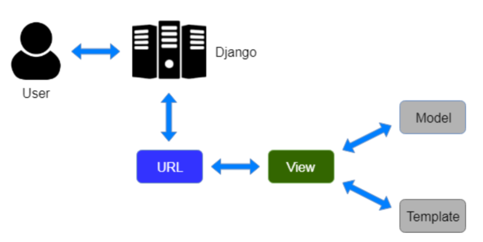 템플릿은 사용자에게 보여지는 부분으로, 사용자가 HTML파일을 본다고 하면 템플릿 부분에서 사용자에게 HTML파일을 전달하게 되는 것이다.