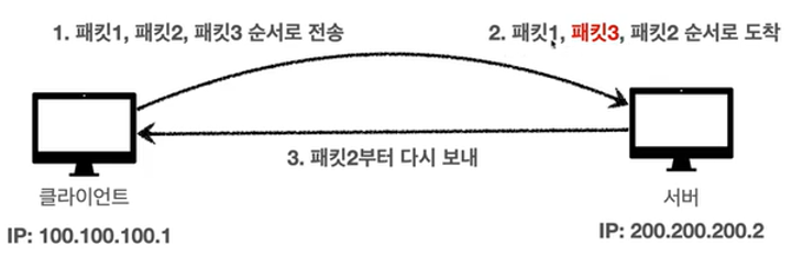 IP 프로토콜에선 ② 비신뢰성 문제에 의해서 데이터를 보내도 유실될 수 있었지만 이 문제로 해결 가능