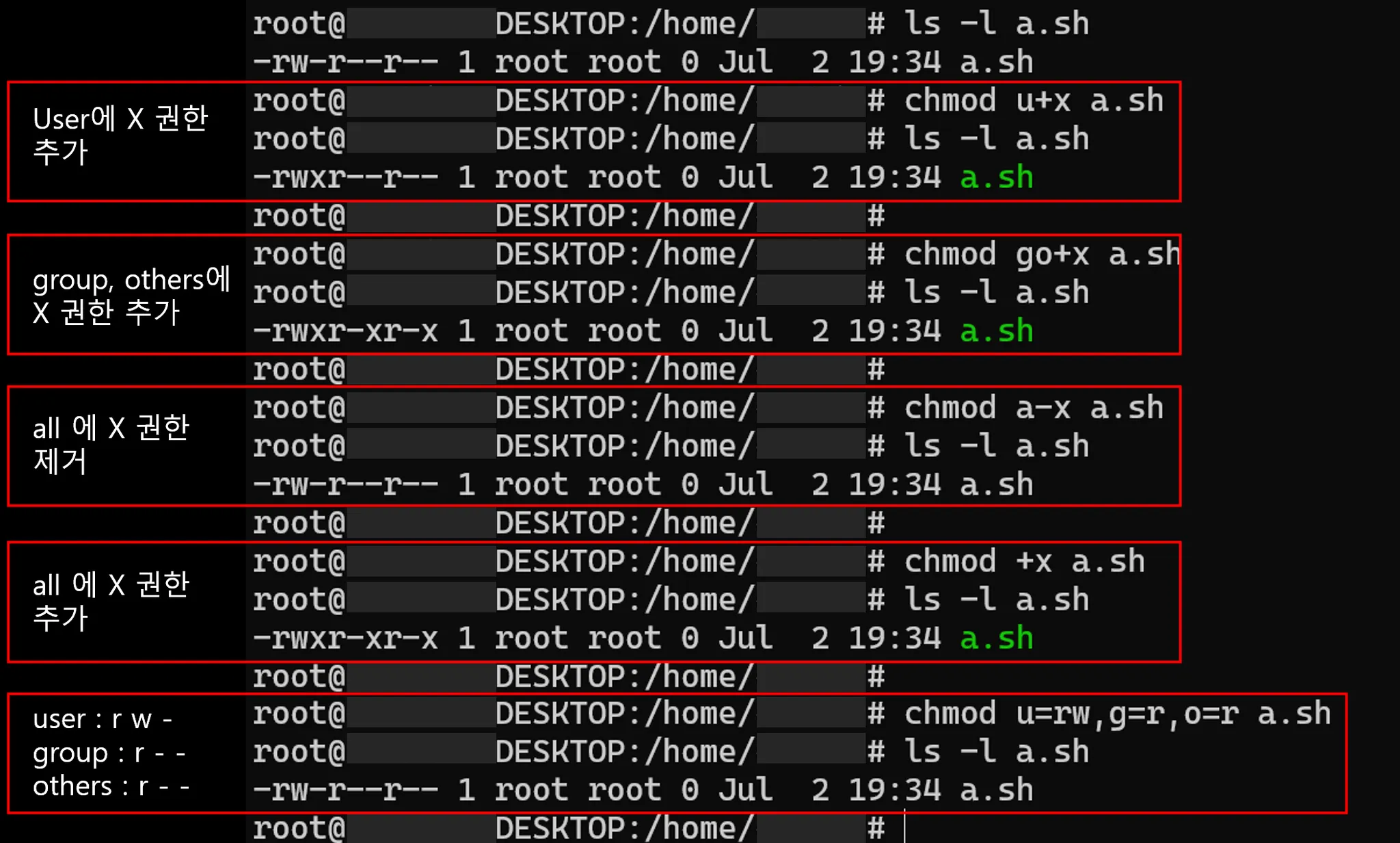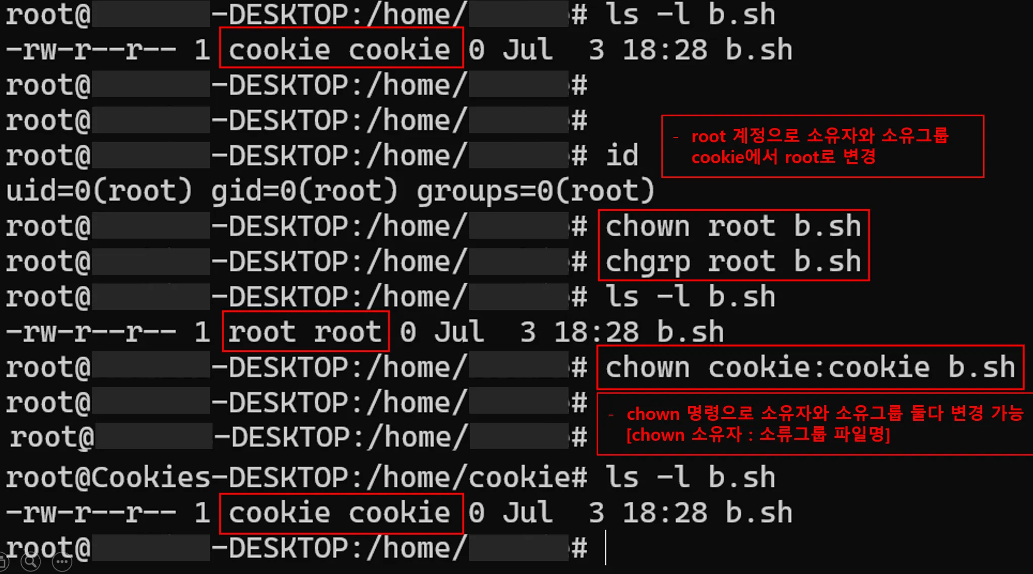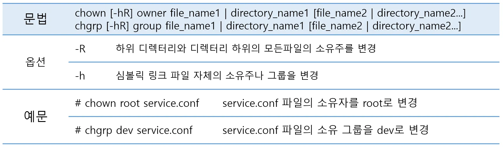 2) 파일 소유자 OR 소유그룹 변경(chown/chgrp)