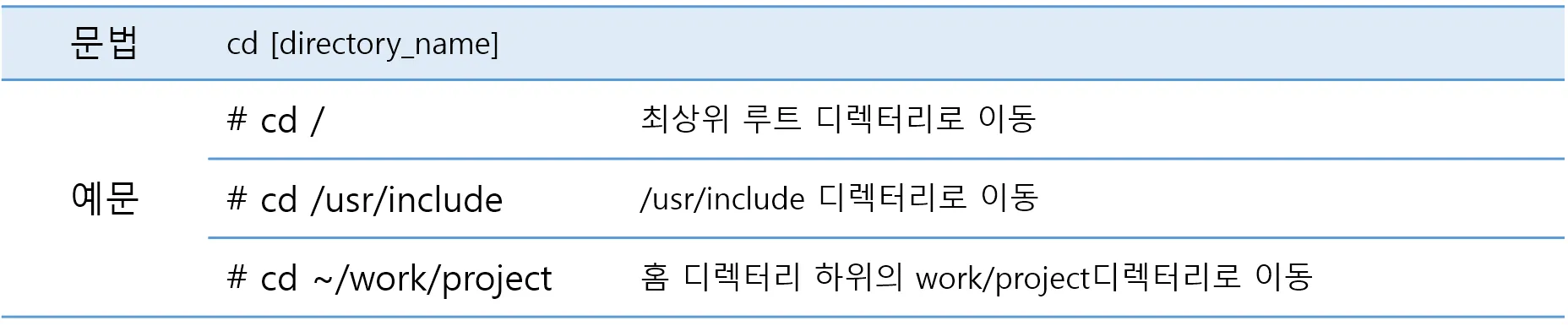 - 절대 경로명 : 최상의 루트 디렉터리(/) 기준 경로 표시