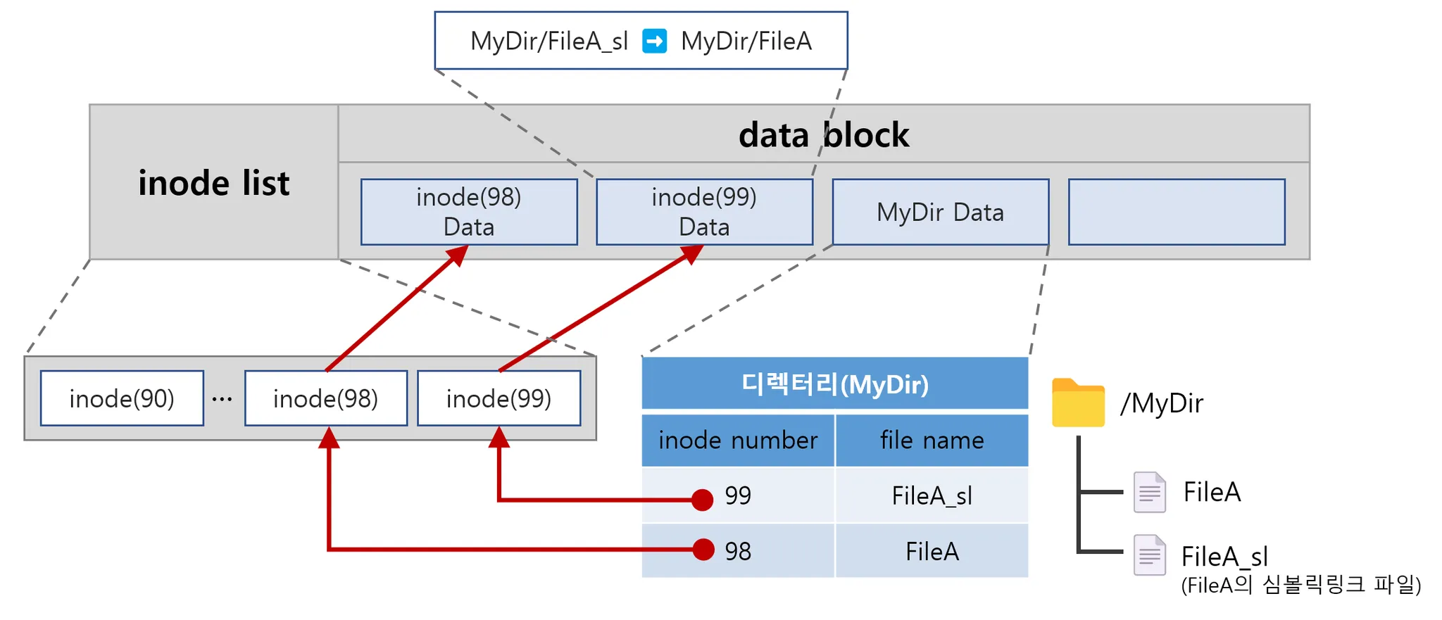 하드링크(Hard Link)와 심볼릭 링크(Symoblic Link)로 구분함