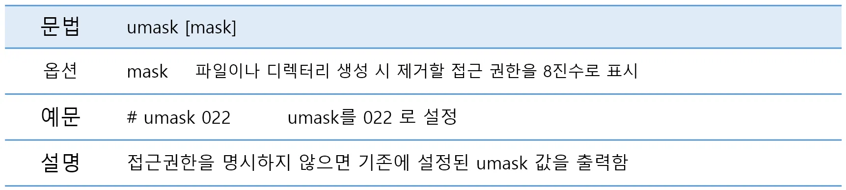 파일 또는 디렉터리 생성 시 접근권한을 설정하기 위해 사용되는 값