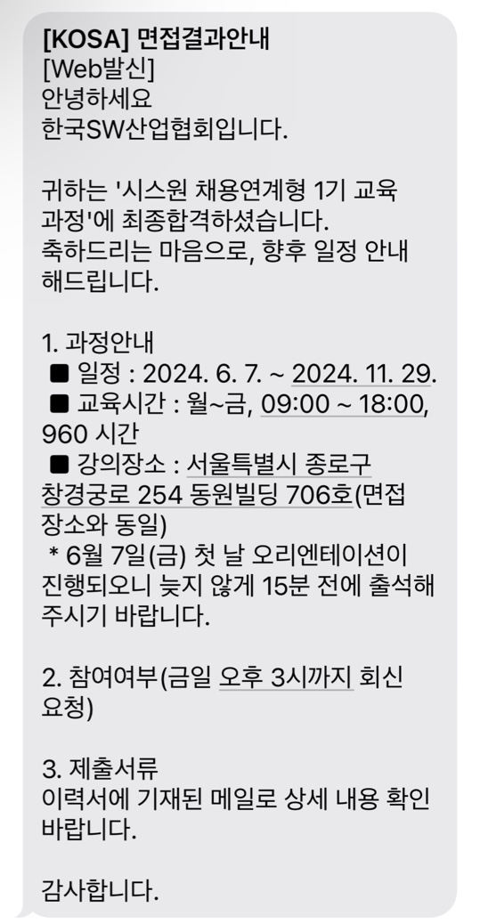 해당 글은 "한국SW산업협회(KOSA) 시스원 채용연계형 SI 개발 전문가 양성과정 지원 후기-2"와 이어집니다! 이전 글을 읽고와주시면 감사하겠습니다~