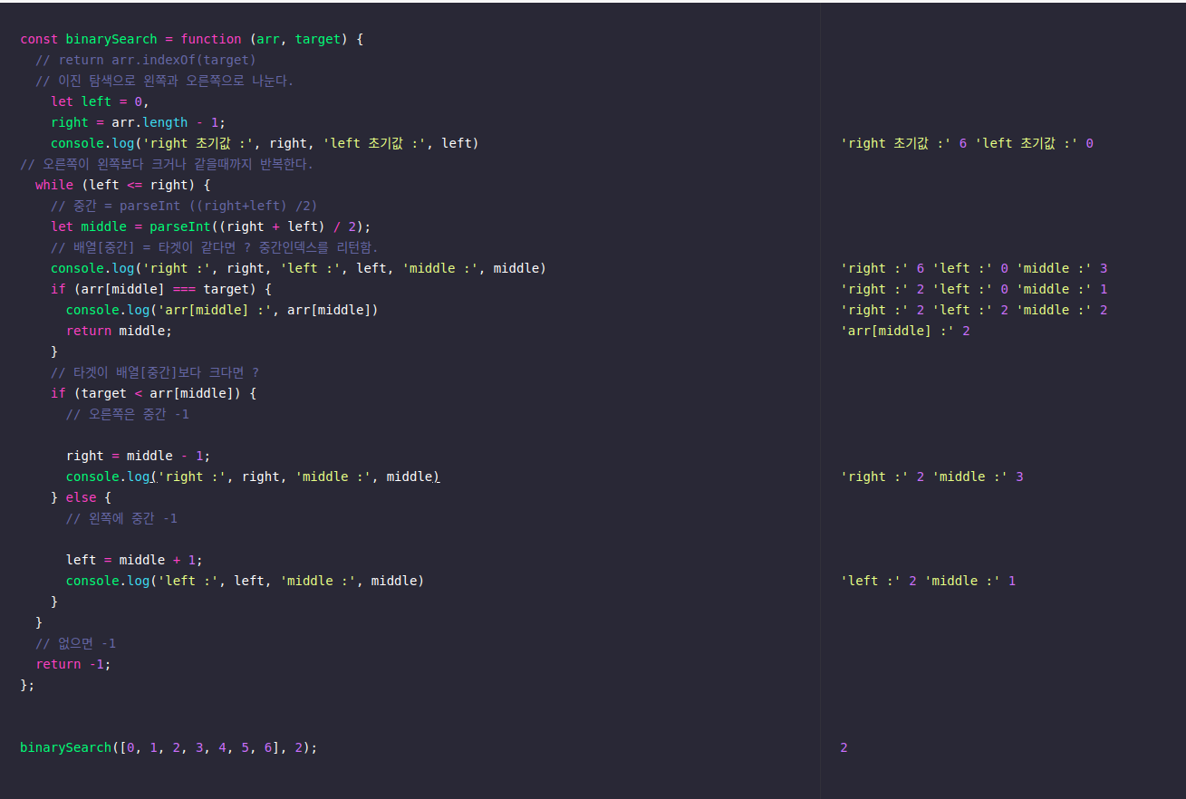 // 배열[중간] = 타겟이 같다면 ? 중간인덱스를 리턴함.