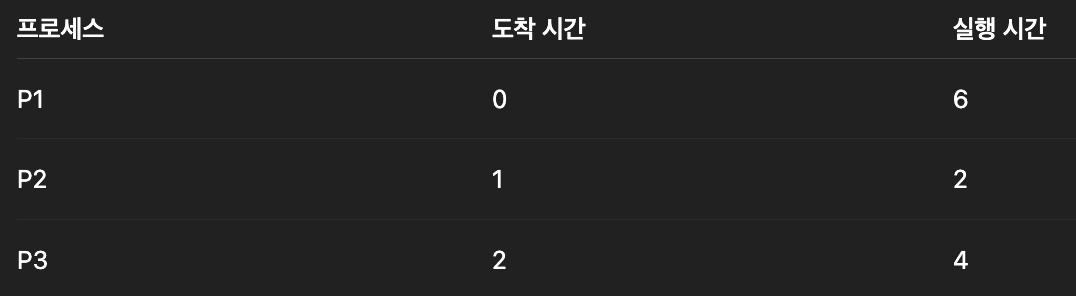 - Convoy Effect 발생 : 긴 작업이 앞에 있으면 뒤에 짧은 작업들이 오래 기다림