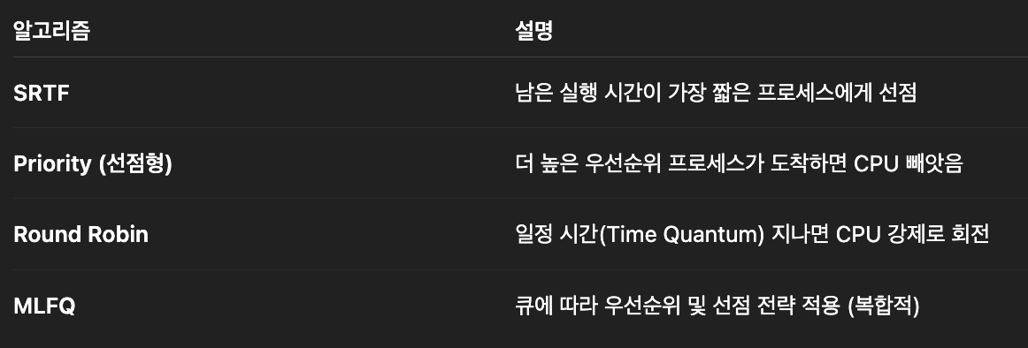 선점/비선점 스케줄링의 차이, 그리고 대표 알고리즘들까지 상세하게 살펴봤습니다.