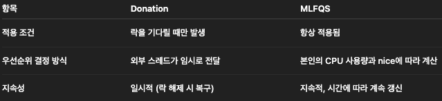 반면, MLFQS는 스레드 자체의 특성과 행동(사용량, 양보 정도)을 기반으로