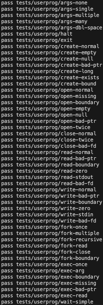 PintOS는 교육용 운영체제로, 처음에는 시스템 콜 인터페이스가 구현되어 있지 않다. userprog 프로젝트에서는 이를 직접 구현함으로써 운영체제가 어떻게 사용자 프로그램의 요청을 처리하는지를 학습하게 된다.