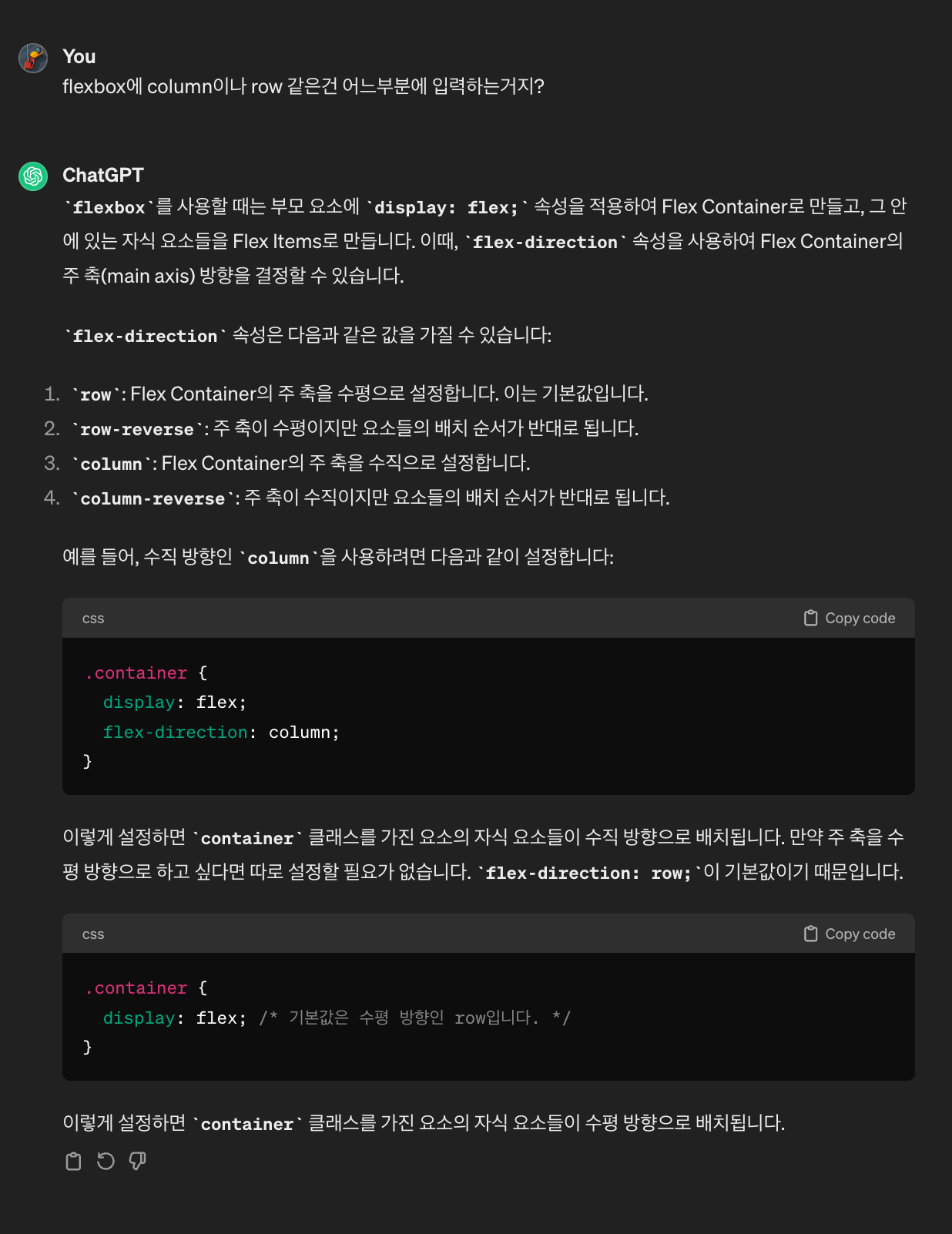 flex-direction(column, row) (주 축(main axis) 설정)