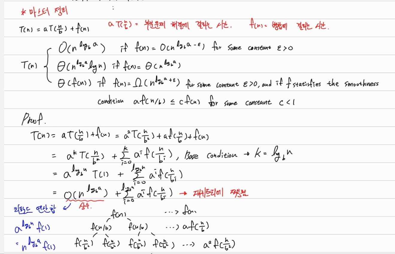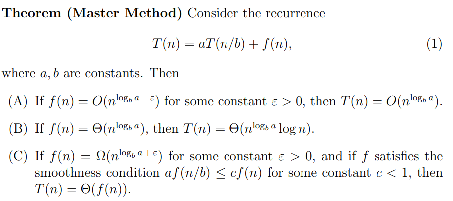 이를 기반으로 정의된 마스터 정리는 다음과 같다
