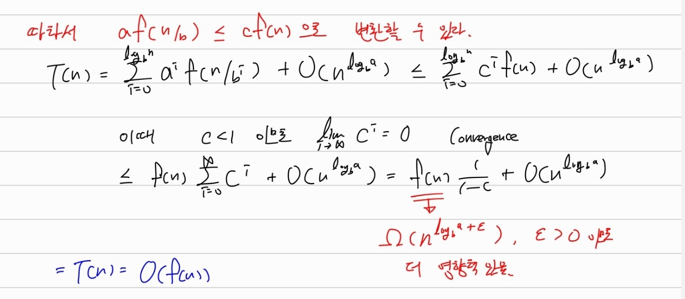 아래와 같은 형태는 최고차항을 직관적으로 파악하기가 어렵기 때문에 마스터 정리를 적용하여 쉽게 수행시간을 파악할 수 있다.