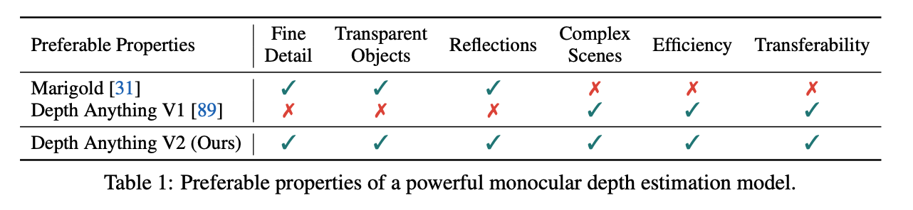 위 사진( 위 Generative, 아래 Discriminative)를 참고해 봤을 때, Depth Anything V2에서는 다음과 같은 목표 설정