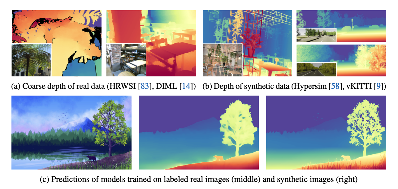 해결책: DINO-G에 기반한 MDE 모델을 오로지 고퀄리티의 synthetic images로 학습, 후에 unlabeled real images와 pseudo depths labels를 할당받는다.
