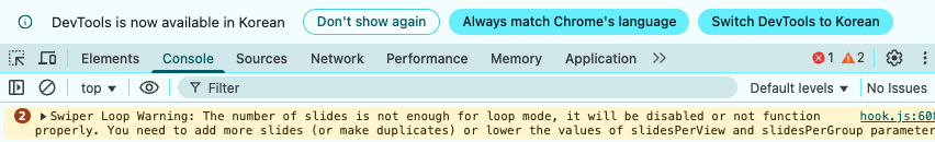 Swiper 오류는 Technic Stack과 같은 이유이다.