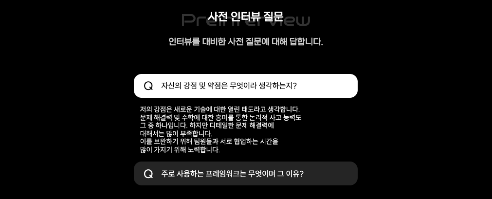 사전 인터뷰는 내용을 좀 더 알차게 꾸미면 좋을 듯 하다.