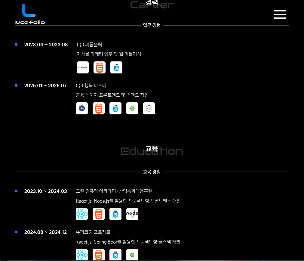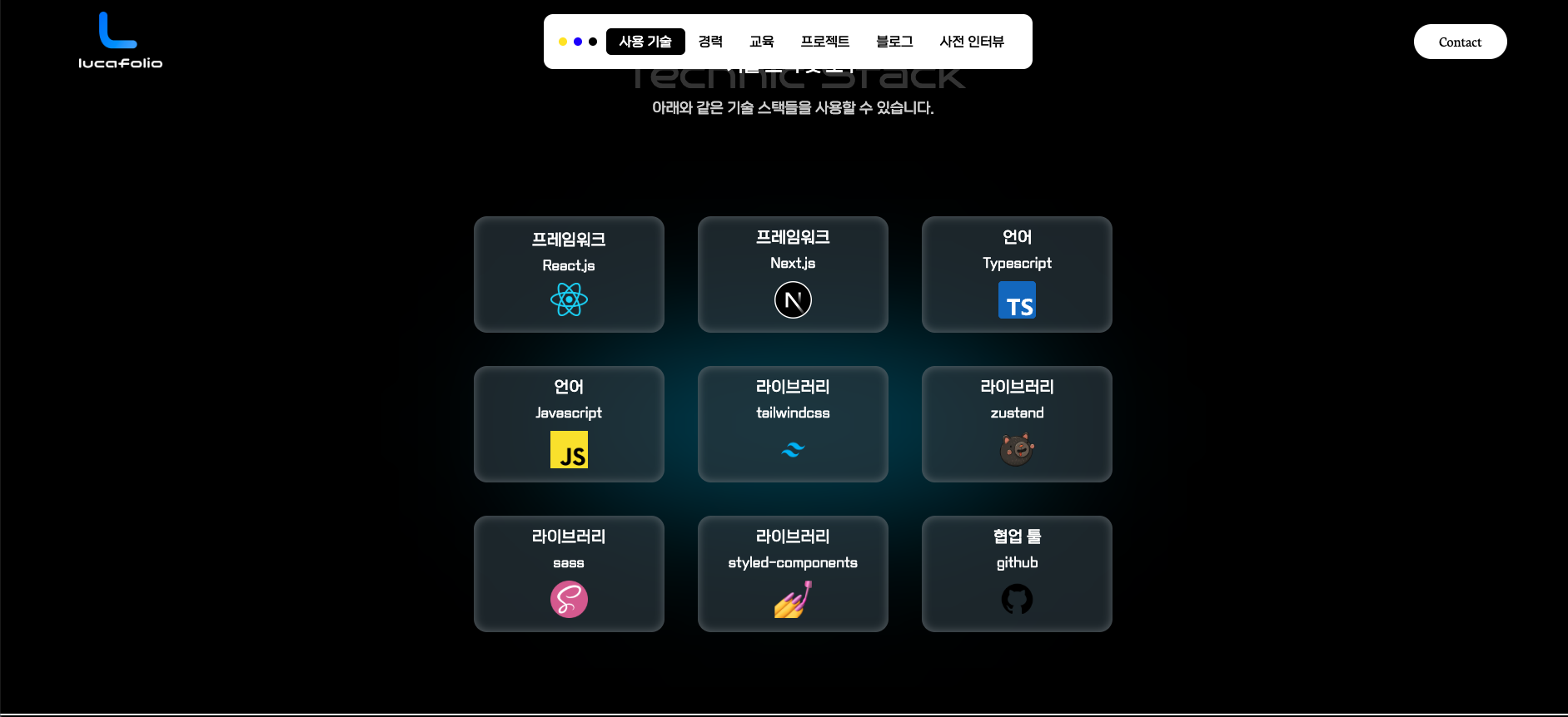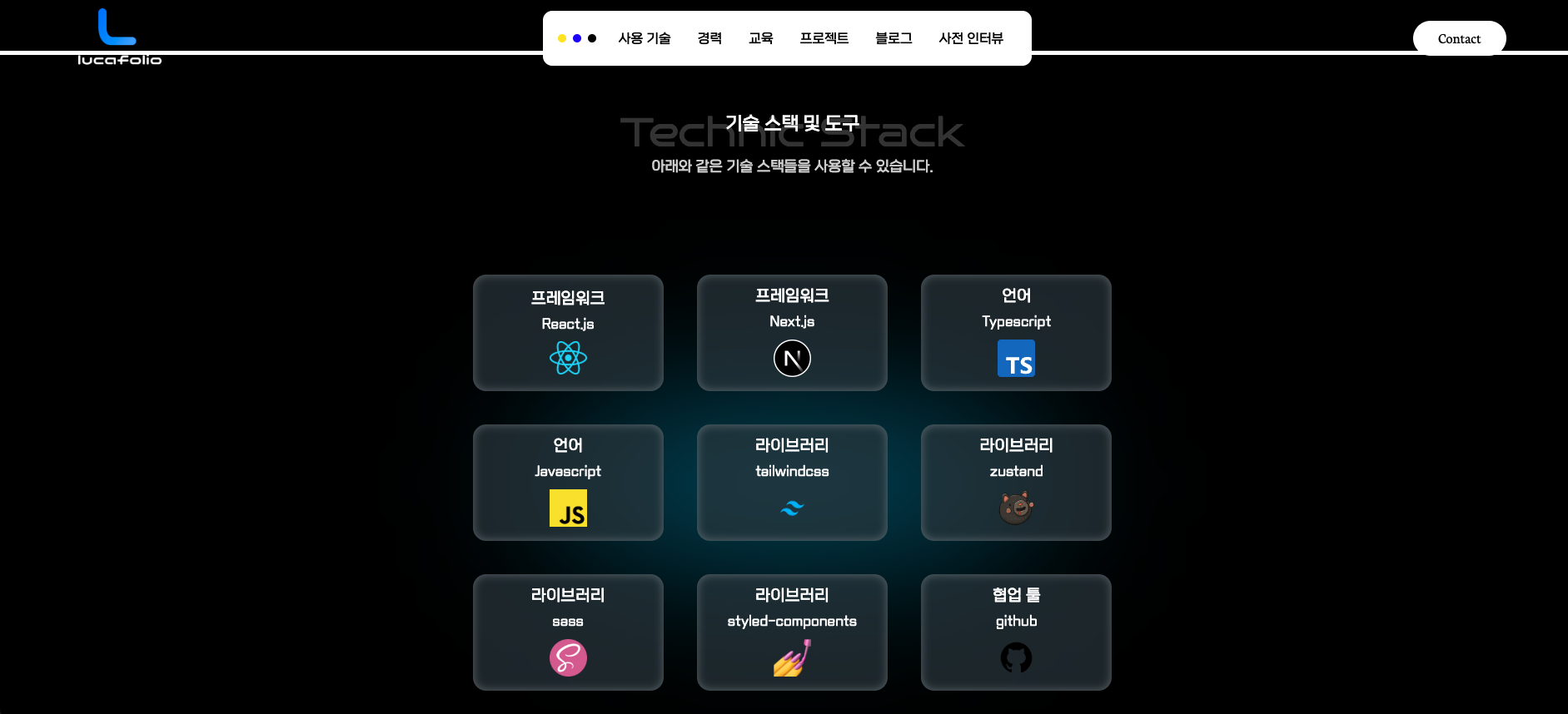 Grid 형태로 그동안 사용한 기술 스택등을 표현했다.