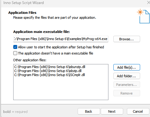 가장 메인이 되는 실행 파일 (.exe)을 지정하고,