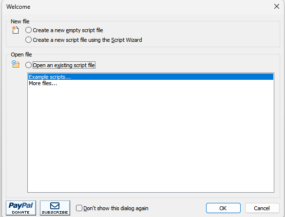 Script Wizard를 통해 정형화된 형식부터 시작하는 방법이 있습니다.