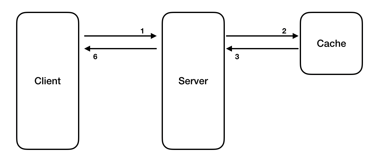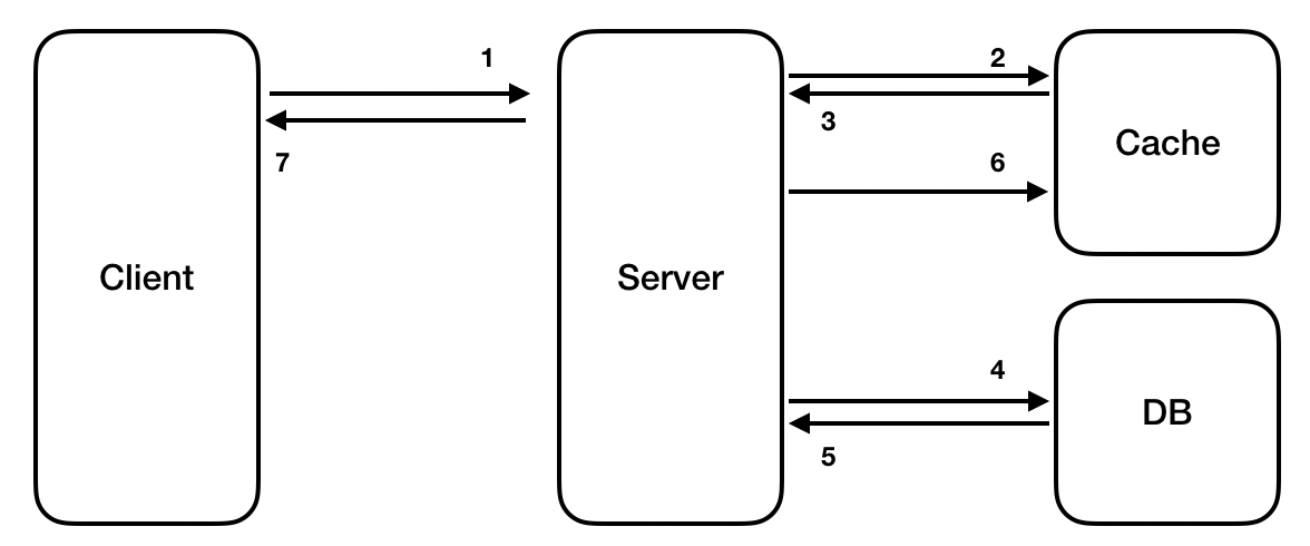 이름에 나타나듯이 레이지 로딩은 클라이언트에게서 데이터가 필요로 해질 때 Cache에 로딩하는 전략입니다. DB나 외부 API에 접근하기 전 Cache를 먼저 확인 한 후 Cache에 데이터가 존재한다면 Cache 데이터를 그렇지 않다면 원본(DB나 외부 API)에 접근하여 값을 가져와 캐시에 올려놓습니다.